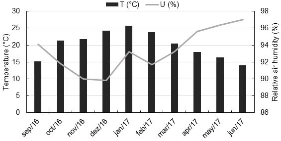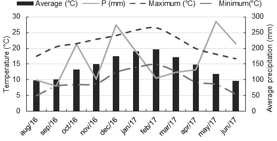 This region has a humid temperate climate (Cfb), with annual mean precipitation of 1,650 mm. Being characteristic of the region, during winter can be snow and minimum temperatures of up to -14 °C, considered the coldest in Brazil (Figure 1).