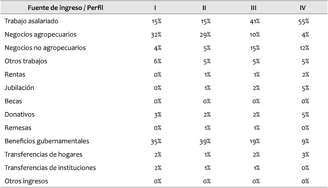 En cuanto a la dimensión de bienestar, se observa que el ingreso mejora en relación con el perfil I, porque en este caso la población puede cubrir el costo de la canasta básica alimentaria rural, aunque su nivel de bienestar aún es muy bajo para cubrir también el costo de la canasta no alimentaria (ver Tabla 3).