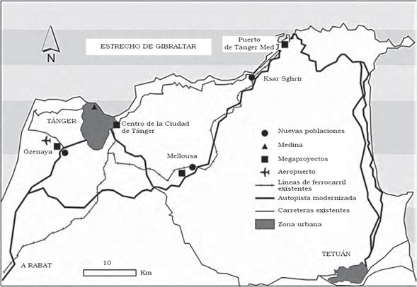 A partir de la primera década del siglo XXI, comienza a acelerarse el proceso mediante el cual Tánger se convierte en una ciudad-región globalizada, con clara orientación económica y política transnacional. Con la intervención de una nueva élite empresarial compuesta por actores públicos y privados, marroquíes y transnacionales, los megaproyectos de gran envergadura están modificando el paisaje territorial y urbano y las pautas del desarrollo en la región del Estrecho de Gibraltar. Se trata de la vía privilegiada por la cual el Estado marroquí busca sacar provecho de los aspectos positivos de la globalización, fomentando la inversión extranjera, el comercio internacional y el turismo.