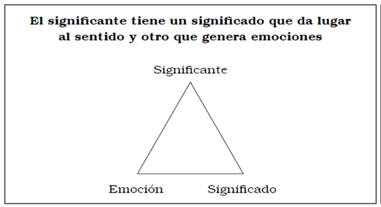 Debido a esto, podemos concebir a la relación bi naria significante-significado como una relación terna ria: entre significante, un significado de sentido y un significado emocional.