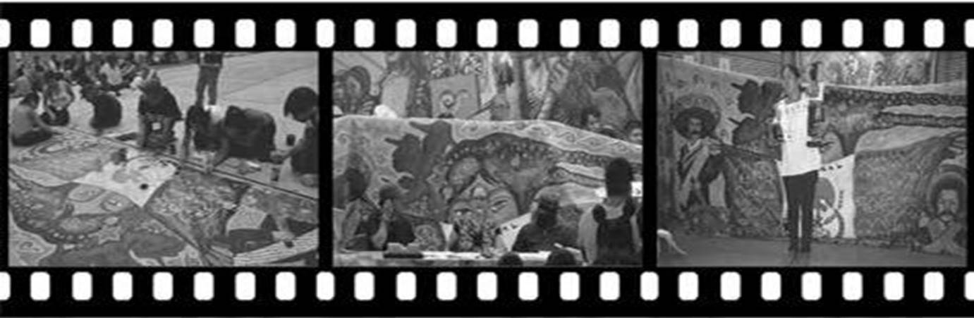 …por eso en las noches como sin voz y como sin rostro, en brigadas de sombras vestíamos y salíamos de dos en dos a manchar de colores patrios los muros oscuros, agujereados por disparos […] Las pintas murales sobre tela o mantas urgentes se hacían como si fuéramos chinos en maquiladora y a cualquier hora, los volantes se elaboraban en esténciles y se repartían, no había tiempo para diseñar, se improvisaba la composición. Pues las mantas y las pintas urgentes eran eso, urgentes, y los experimentos de murales eran relámpagos, también urgentes [Chávez Pavón, 2007: 70 y 71 ].