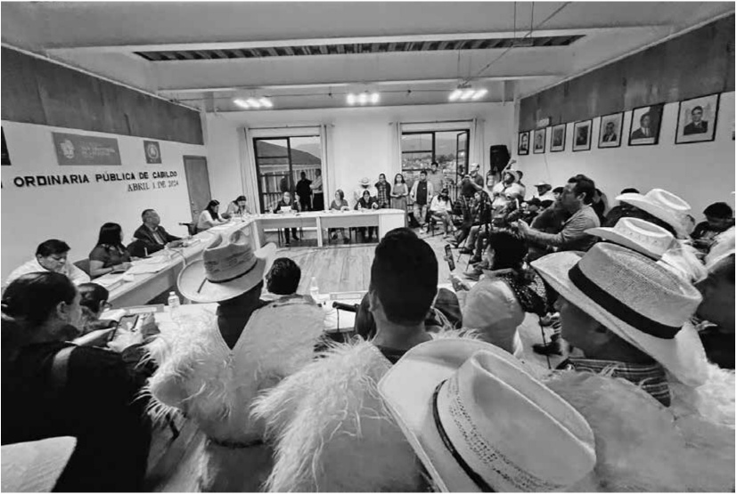Entre diciembre de 2023 y enero de 2024 estuvimos trabajando en el escrito que iba a ser dirigido al presidente municipal de San Cristóbal. Este documento sería una de las estrategias jurídicas del proceso. El 18 de enero ya teníamos el borrador completo, y una semana después nos reunimos para presentarlo a las autoridades. El documento está compuesto, en esencia, por tres partes: a) argumentación jurídica; b) antecedentes de la comunidad y c) peticiones.