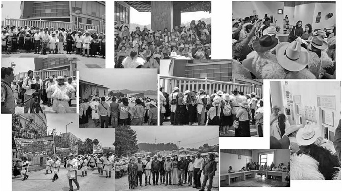 El 6 de febrero el documento fue entregado al Ayuntamiento y el 1º de abril fue programada la sesión pública de Cabildo donde se abordarían nuestras solicitudes. Para la sesión de Cabildo combinamos tres estrategias de acción: a) la movilización y concentración de aproximadamente 1 200 personas de la comunidad afuera del Ayuntamiento; b) la convocatoria a distintos medios de comunicación locales para que cubrieran la noticia, y c) la presencia de algunas de las autoridades de la comunidad junto con el CE durante la sesión. De esta manera, logramos ejercer una presión social y mediática (fotos 1 y 2) mientras se llevaba a cabo la sesión de Cabildo, lo que resultó en la aprobación de todas nuestras peticiones.