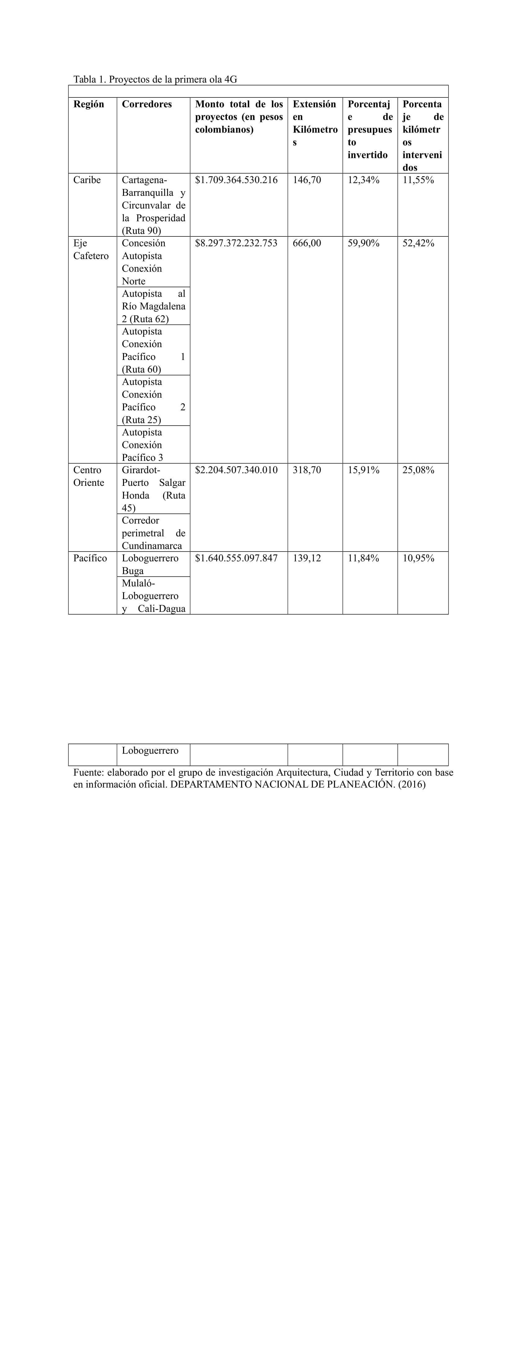 Al analizar los primeros resultados de la investigación Impacto de grandes proyectos de infraestructura en las dinámicas urbano regionales fase II3 llama la atención que, al revisar los diez proyectos de la primera ola de vías 4G (véase Tabla 1), el 52% están ubicados en Antioquia y sus inmediaciones, y copan el 599% de los costos presupuestados. Esto nos revela que el tema de la equidad regional no fue un punto decisivo para su priorización.
