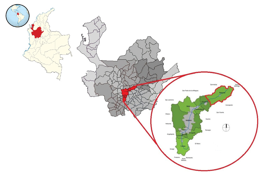 Así, la primera característica del territorio, y de hecho, la más importante, está relacionada con los 34 kilómetros de distancia por carretera pavimentada que separan a Medellín (capital del departamento y segunda ciudad en importancia del país) de Barbosa (véase Figura 1. Ubicación del Área Metropolitana del Valle de Aburrá en un marco regional, nacional e internacional.