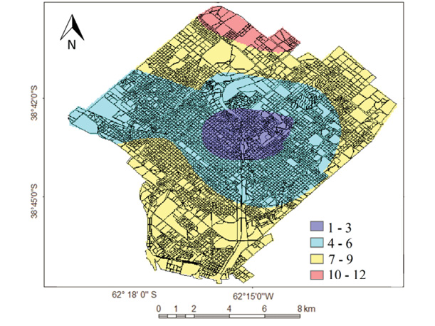 El análisis del confort invernal permitió observar las diferencias entre el centro de la ciudad y su periferia. Patagonia e Ing. White se comportaron de manera similar a la periferia norte. El resto de las áreas estudiadas tuvieron un patrón térmico coincidente con el observado en el centro. Del análisis de los índices estivales e invernales se concluye que la ciudad de Bahía Blanca presenta tres zonas con comportamiento de confort similar (véase Figura 9). La delimitación de estas áreas coincide con lo expresado por Stewart y Oke (2012): tienen condiciones climáticas locales y representan una superficie uniforme con estructuras urbanas, densidad edilicia y materiales de construcción que les dan autonomía.