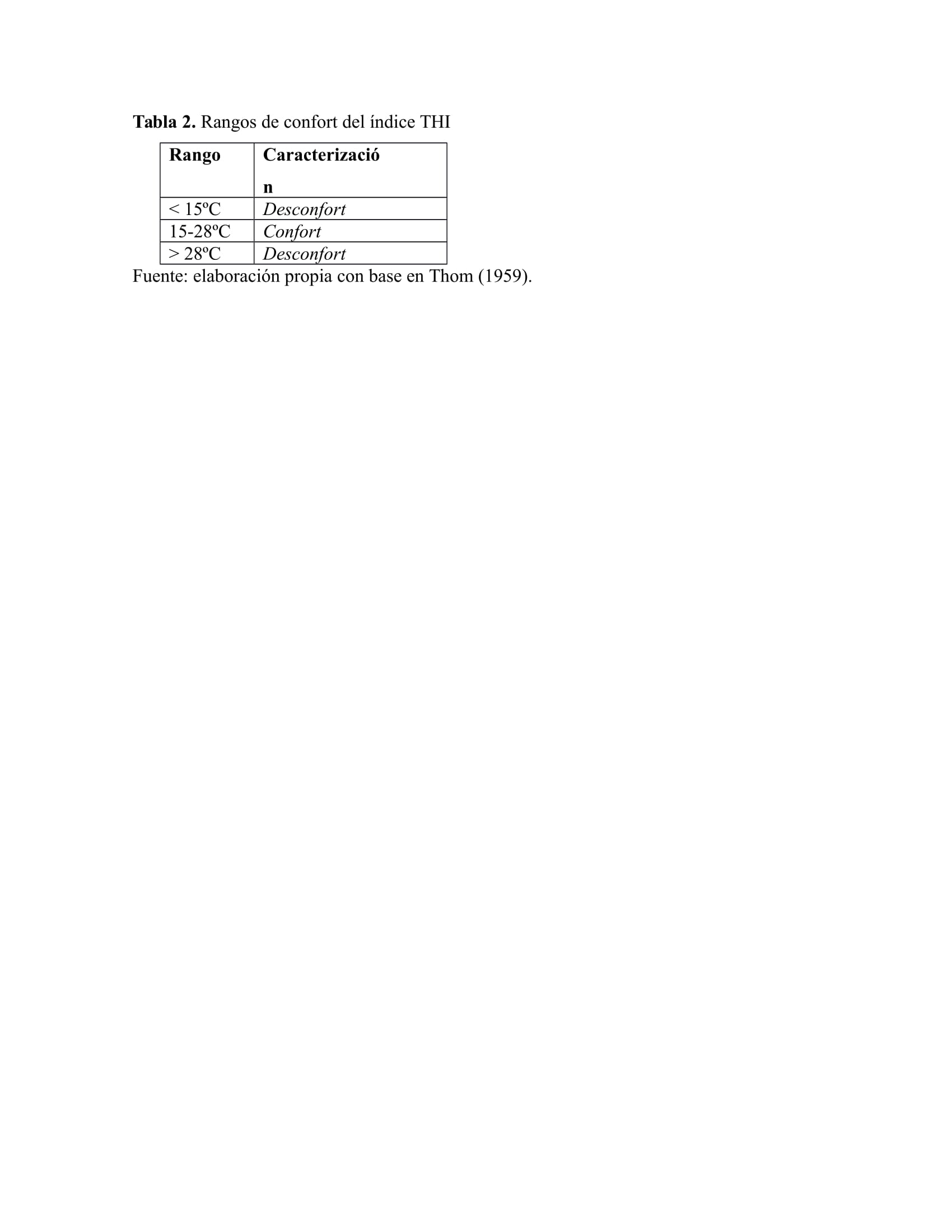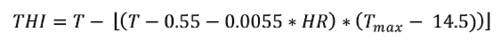 El índice THI (Temperature-Humidity Index) indica la temperatura que sienten las personas considerando la temperatura máxima del día y la humedad relativa, y se calculó mediante la aplicación de la siguiente fórmula: