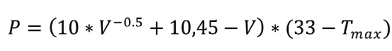 Donde P es el valor refrigerante del aire y Tmax es la temperatura máxima del día. Las condiciones de Confort se consideraron en un rango de 300 a 600 Kcal m2-1 h-1, las de Algún desconfort de 50 a 300 Kcal m2-1 h-1. Por debajo de este límite se encontraron las condiciones de Gran desconfort (Besancenot, 1991).
