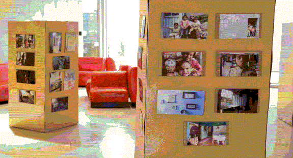 Se diseñó de manera conjunta entre PROSOFI y la líder de la investigación una convocatoria abierta dirigida al sector Bolonia, invitando a participar a niños y a niñas entre los 6 y 12 años de edad en un taller de fotografía, el cual se realizaría los sábados durante siete sesiones. La convocatoria tuvo acogida en los barrios Compostela II y Compostela III. En la primera jornada se les entregaron imágenes del interior de unas viviendas y de espacios urbanos con el fin de explicarles el ejercicio que realizarían. Esta actividad se complementó con algunos ejercicios prácticos. La segunda sesión se centró en dar instrucciones sobre el manejo de la cámara, de igual manera, se realizaron ejercicios prácticos. La tercera y cuarta sesión estuvieron dedicadas al registro fotográfico: una del interior de la vivienda de cada niño o niña, y, la otra, del barrio. Ambas se desarrollaron en distintos momentos teniendo en cuenta la disponibilidad de los familiares, porque era necesario que ellos acompañaran a cada menor. Un aspecto significativo para la toma de las fotografías fue la restricción del uso del flash para capturar la iluminación real de los espacios. En la quinta sesión se seleccionaron las fotografías que se presentarían en las exposiciones que se realizaron en las dos últimas sesiones, las cuales buscaban un espacio de diálogo con los demás integrantes de la familia. La primera exposición tuvo lugar en las instalaciones de la Pontificia Universidad Javeriana (Imagen 2 e Imagen 3) y, la segunda, en los barrios Compostela II y Compostela III (Imagen 4 e Imagen 5).
