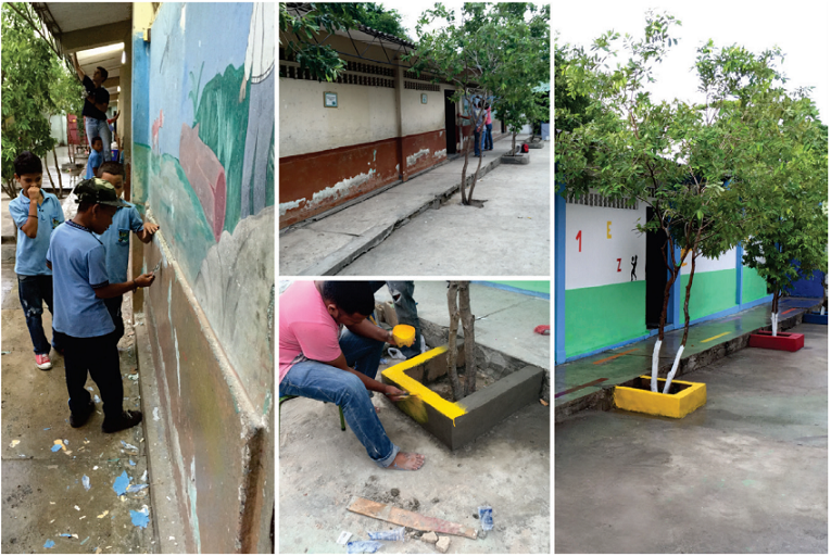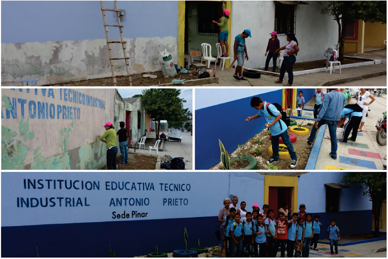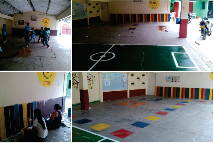 Abstract: Sincelejo is painted in colours is a creative, sustainable and innovative bet of the Architectural Consultory of the Caribbean University Corporation (CECAR), in which university students, teachers and people from the community carry out interventions to transform the locative conditions of some establishments and public spaces of the city. The article presents the intervention carried out in the Industrial Technical Educational Institution, headquarters El Pinar in Sincelejo (department of Sucre), in which, through the use of coloured paint and recyclable materials, the aim was to improve the quality of life and locative environmental condition in the educational community.