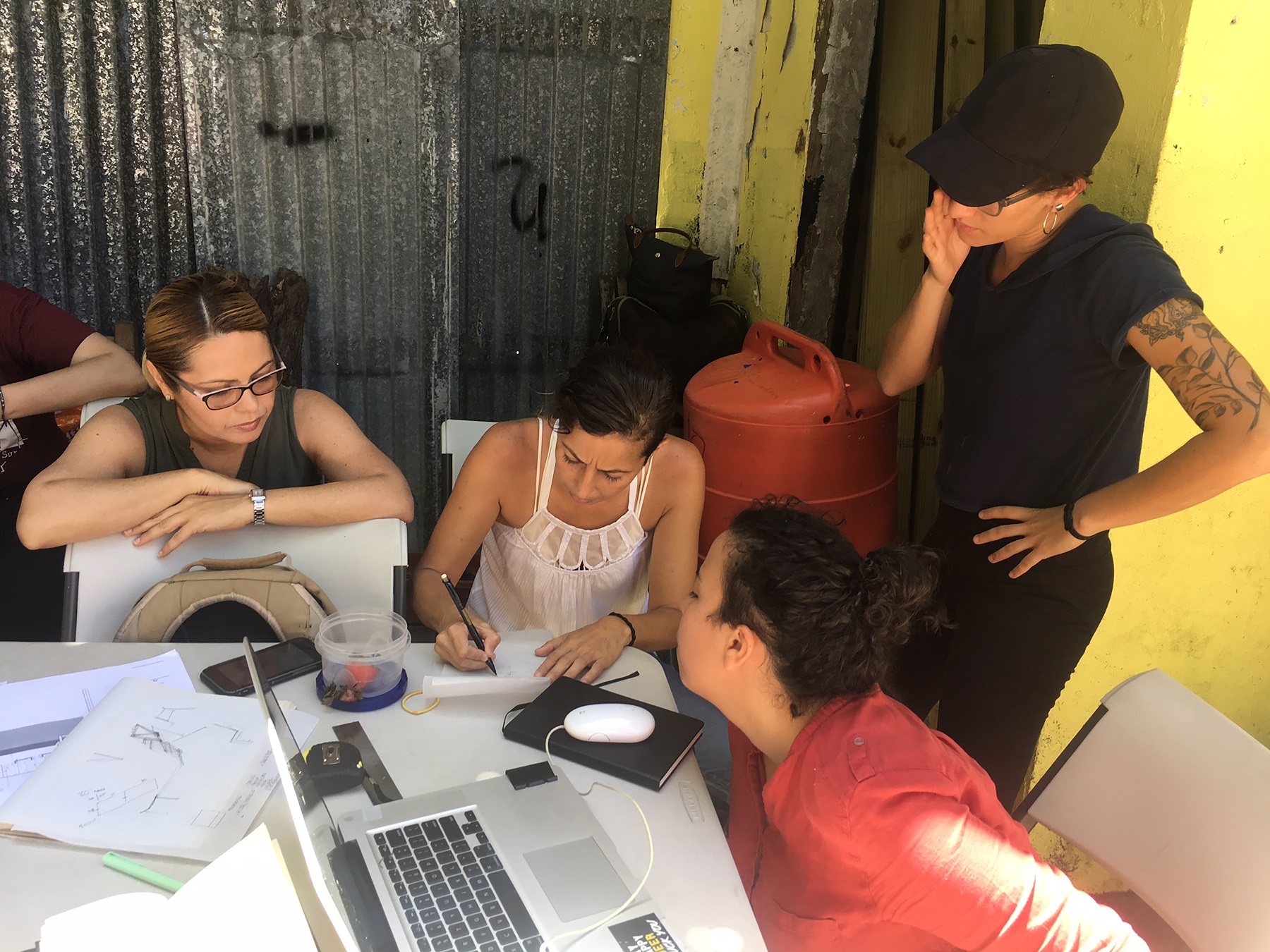 La estrategia consistió en solicitar a la Brigada PDT acceso a la Plaza Vivero para realizar allí todas las actividades del workshop como: ejecutar el as-built o planos de la estructura existente con anotaciones específicas de su forma, límites y condición; presentarle a los estudiantes, voluntarios y residentes los documentos que se crearon para que fueran utilizados como referencia para las propuestas de diseño colaborativo; y realizar, en un solo día, el ejercicio intensivo de diseño con los estudiantes. Trabajar en la Plaza Vivero facilitó el diálogo entre los residentes y los estudiantes debido a que ocupamos el espacio que ellos autodenominaron como un centro y lugar de encuentro.