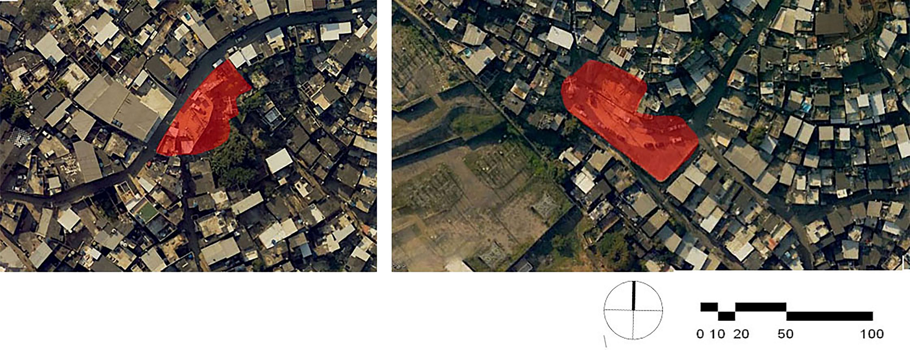 En 2016 (Figura 5, derecha) esas edificaciones fueron removidas, probablemente como consecuencia de las fiscalizaciones de la Prefectura y la Policía, que intentaban mantener controlada y segura el área. Paralelamente, sobre el talud de estabilización del área intervenida, se observan algunas excavaciones que corresponden al inicio de construcciones informales.