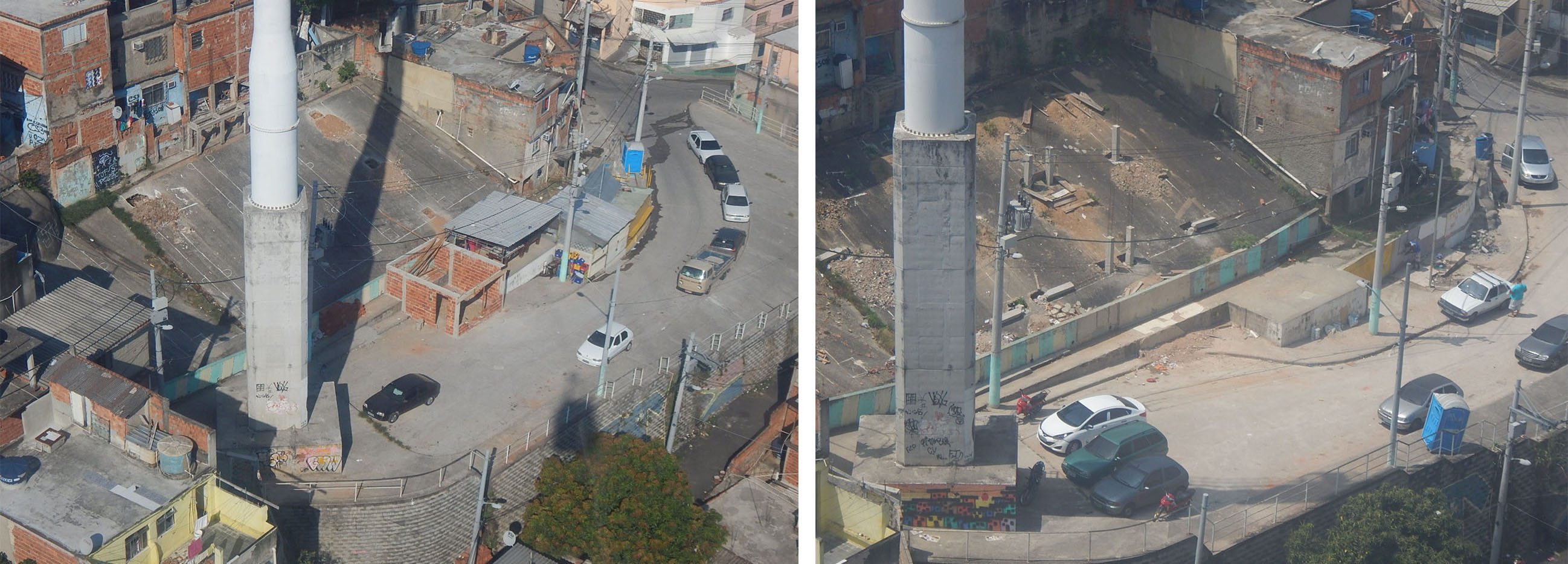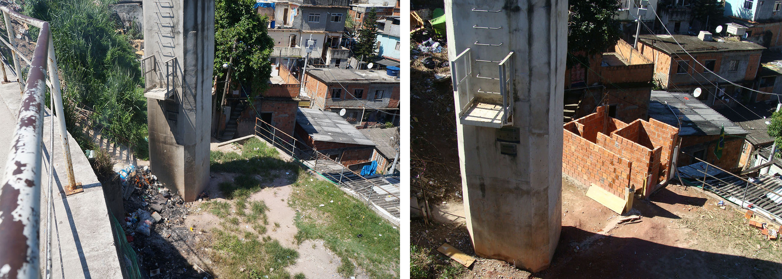 De esta forma, un espacio residual surge también como un lugar víctima de la subutilización, carente de significado e identidad. En las favelas, son el resultado de una estrategia urbana desigual y, en casos como el del teleférico del Complexo do Alemão, surgen también como consecuencia de un desajuste entre la escala infraestructural y la escala arquitectónica. Ganan significado y visibilidad una vez que, como espacio habitado, son valorizados y modificados de forma insurgente por la población, creando nuevas relaciones espacio-afectivas. El desencuentro entre la planificación oficial y los intereses de la población, se comprueba al observar una escala no atendida por los proyectos infraestructurales, dejando a la deriva el potencial de sociabilidad, encuentro y apropiación positiva de muchos de los espacios residuales, los que surgieron para abrir espacio al artefacto infraestructural.