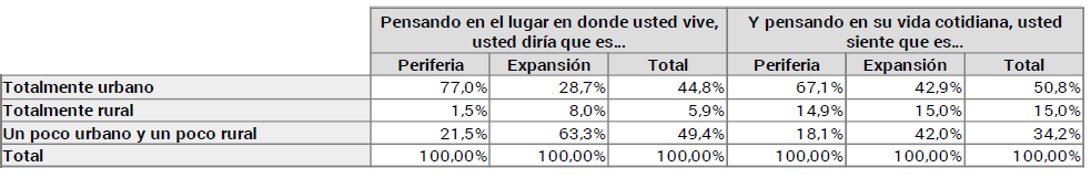 En términos de identidades territoriales, los conjuntos en zonas de expansión urbana combinan elementos urbanos y rurales (Tabla 4). En la práctica, todos los conjuntos estudiados en zonas de expansión urbana limitan, en algún punto, con un lote agrícola, o bien, sin urbanizar.