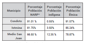 Población Étnica en los municipios de Condoto, Istmina y Medio San Juan año 2018