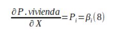 donde X representa el vector de atributos propios de la vivienda y las características no observables; por tanto, el precio hedónico de cada atributo se puede determinar mediante la siguiente ecuación: