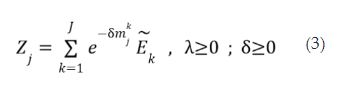 En esta expresión, representa la cantidad de empleo en una localización , y es la distancia entre diferentes unidades espaciales y . El parámetro define la velocidad a partir de la cual el efecto del spillover declina con la distancia; esto también se conoce como parámetro de fricción.