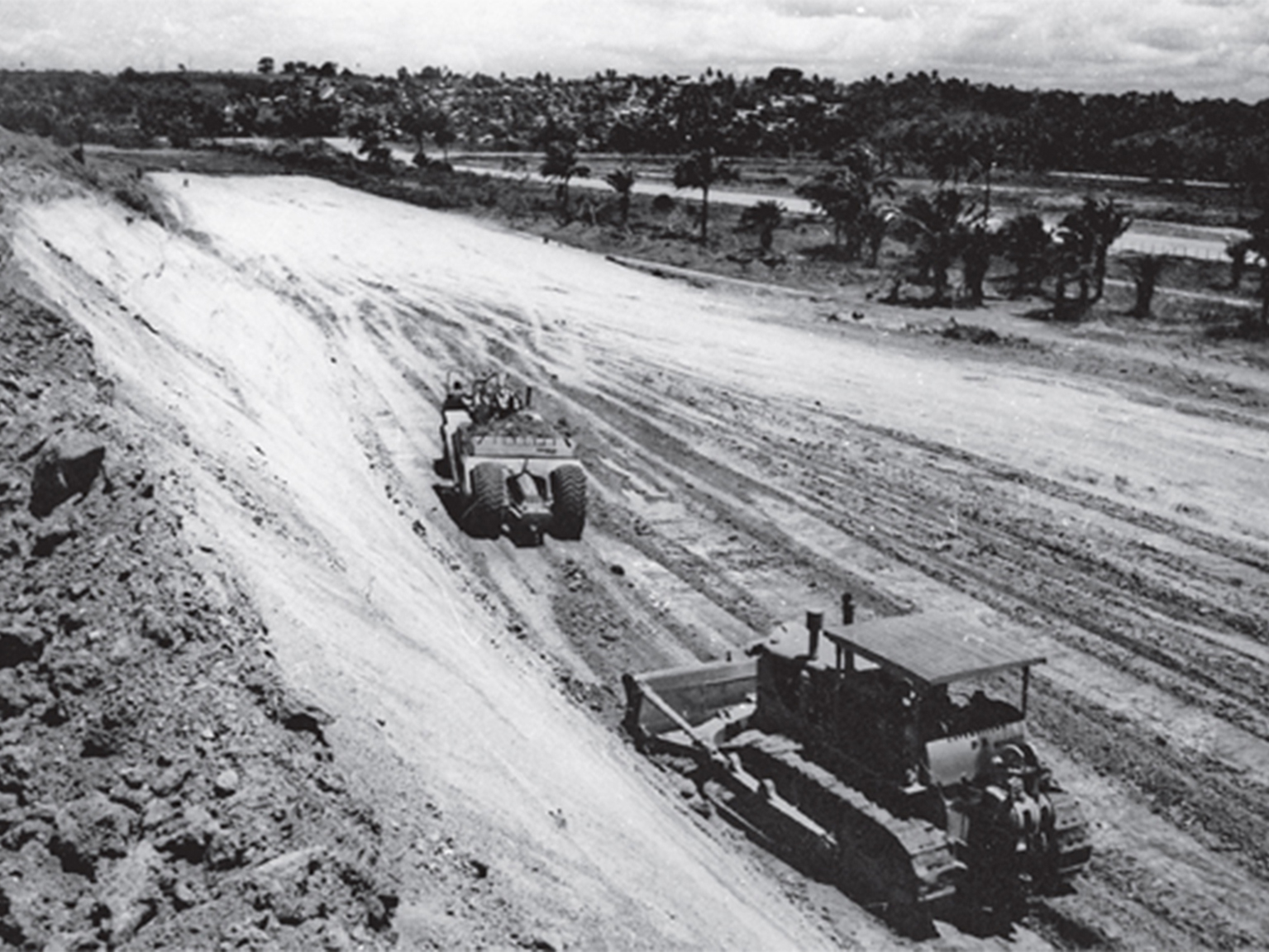 Já nos idos de 1930, a implementação de grandes obras rodoviárias não representava uma novidade e carregava algumas décadas de disputas e articulações políticas. Somada a pressões em prol de uma imagem desenvolvimentista do país, a construção do eixo viário da Avenida Brasil, iniciada por Getúlio Vargas em 1939, por sobre uma região aterrada, às margens da Baía de Guanabara, seria uma resposta prática a dois temas importantes[2]. Em primeiro, à necessidade de escoamento do tráfego rodoviário. Em segundo, aos desejos de políticos e técnicos de facilitar a conexão entre o Rio, então capital federal, e outras importantes áreas do país.