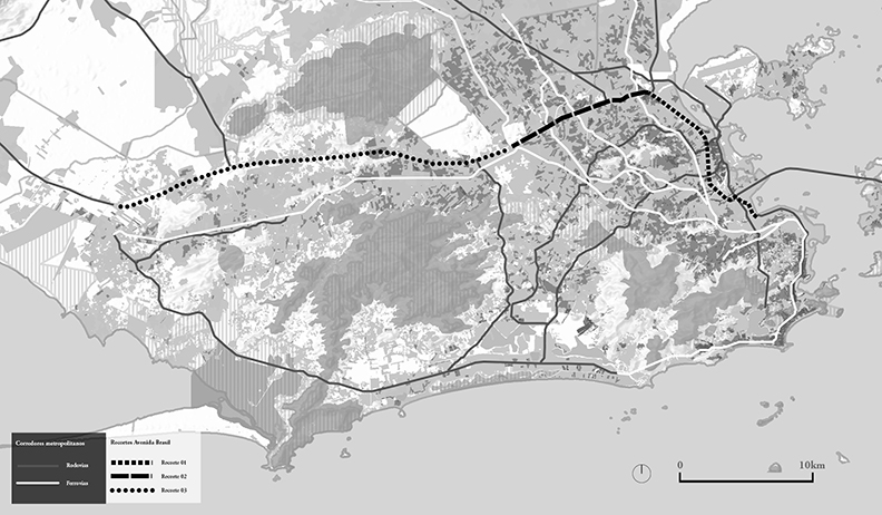 A Avenida Brasil corresponde ao trecho, contido nos limites municipais do Rio de Janeiro, da rodovia BR-101, que corta 4,650 km do litoral do país, ao longo de 12 estados. Além de percorrer uma série de cidades metropolitanas, a via atravessa as regiões de Natal, João Pessoa, Recife, Aracaju, Vitória, Santos, Curitiba e Florianópolis, percorrendo, ademais, inúmeras aglomerações de pequeno e médio porte, onde atrai ocupações e usos diversos. À BR-101 somam-se inúmeras outras estradas que, ao induzirem o crescimento urbano, acumulando fluxos, funções e pessoas, reforçam a recorrência e a importância dessa categoria infraestrutural.