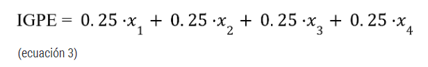 En la ecuación (3), IGPE significa índice general de la participación efectiva en los instrumentos de planeación de carácter ambiental. Su resultado estará expresado en valores que están en el rango (0, 1], y su interpretación tendrá la siguiente orientación: Nivel de importancia Muy alto: 0.8 < IGPE 1, Alto: 0.6 < IGPE 0.8; Medio: 0.4 < IGPE 0.6; Bajo: 0.2 < IGPE 0.4; Muy bajo: 0.0 < IGPE 0.2.