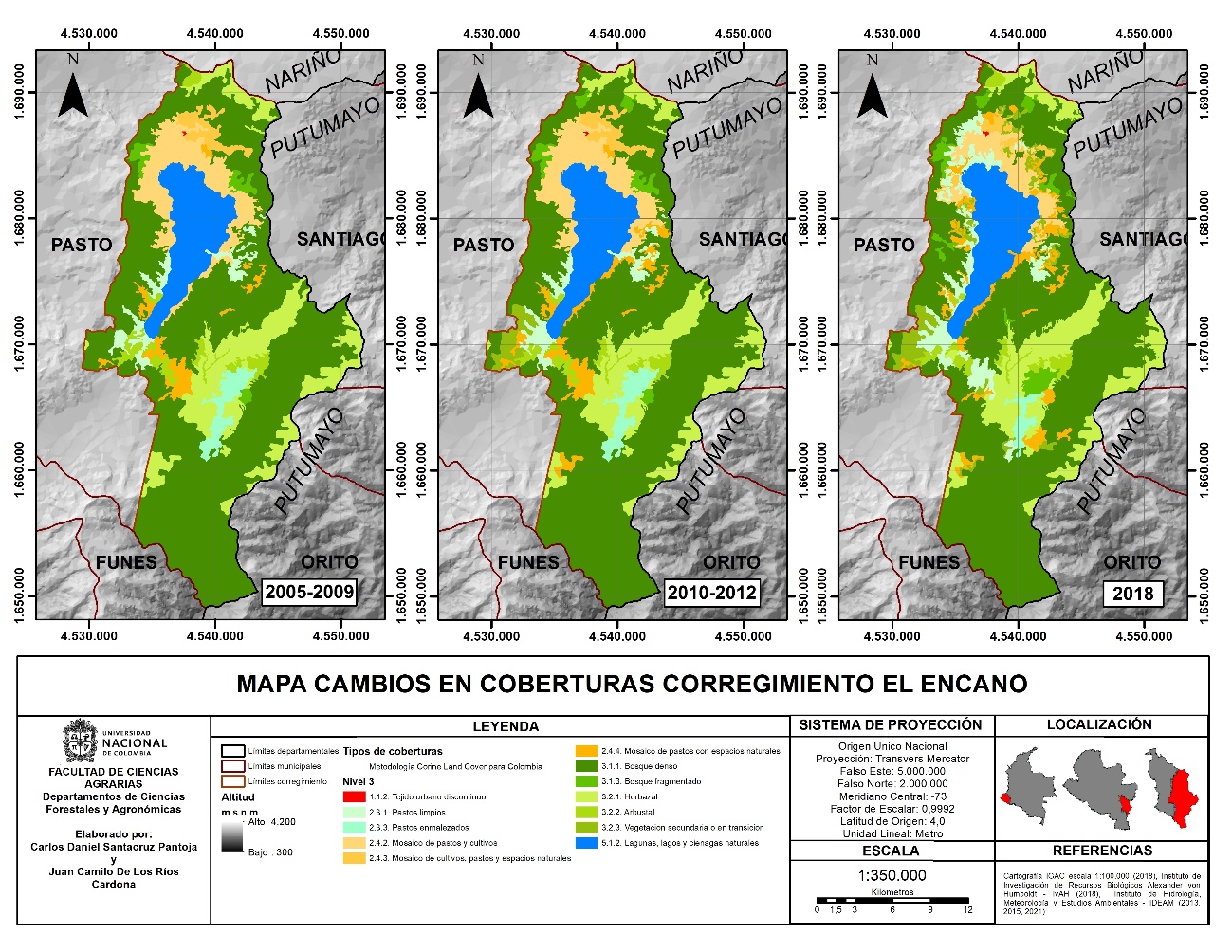 Instituto de Hidrología, Meteorología y Estudios Ambientales (IDEAM). (2013, 2015, 2021). [Shape]. Mapa de Cobertura de la Tierra: Adaptación Corine Land Cover. República de Colombia. Escala 1:100.000. Periodo 2005–2009, 2010–2012 y 2018. Recuperado de https://www.colombiaenmapas.gov.co/#
