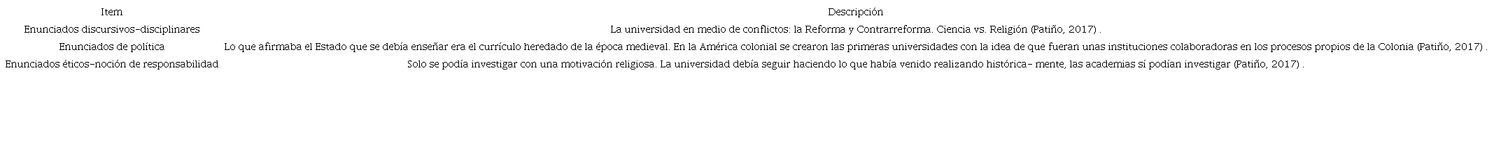 Tensiones en el siglo XVI: ciencia y religión-investigación y universidad. Durante el siglo XVI, y en el marco de la Reforma protestante de acuerdo con Patiño (2017) se presentaron tensiones de diversa índole contra la religión católica dominante, y entre ellas destaca el cuestionamiento sobre la educación que se impartía. La idea de universidad medieval decayó, y se dio inicio a lo que se denomina la ciencia moderna, gestada particularmente fuera de la universidad, al margen de los preceptos que privilegiaban la enseñanza platónica y aristotélica en contraposición a la enseñanza de los conocimientos de Newton y de los que posteriormente en el siglo XVIII desarrollaría Kant, esto llevó a que se institucionalizaron las denominadas Academias , lugares ajenos a la universidad donde sí se podía desarrolla la ciencia. El hecho de una ciencia que no se podía enseñar en la universidad demarcaba una responsabilidad política, ya que dentro de la universidad solo se podía seguir haciendo lo que hasta ahora se estaba realizando, formar a los servidores y funcionarios del Estado y de la iglesia (Tabla2).