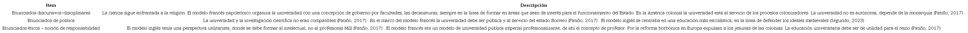 Por otra parte, el modelo inglés que guarda relación con las ideas medievales de la universidad al servicio de ciertas áreas del conocimiento y, especialmente, al servicio del clero (Tabla 3) .
