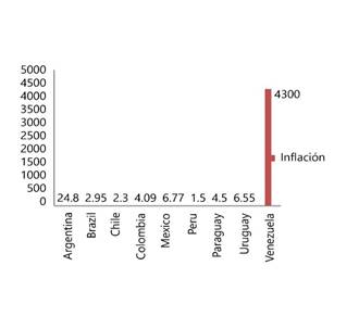 Según los datos históricos del Banco Mundial para los años 2016-2017, la inflación promedio en el mundo bajó, pasando de niveles promedio de 3,7% en 2012 a 2,5% en 2014 y la tendencia, aunque parece estabilizarse siguió a la baja más lentamente. En ese sentido, para los años 2016-2017 el comportamiento en América Latina mostró una conducta estable, excepto en países como Argentina, México y Venezuela, tal y como se puede observar en el Gráfico 1.