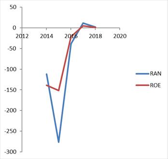 Rentabilidad Operativa Ante de Impuestos (RAN) y Rentabilidad del Patrimonio (ROE) para el período 2014-2018.
