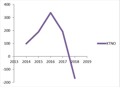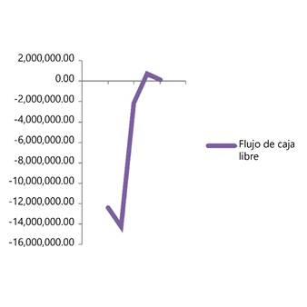 En lo que respecta al comportamiento del flujo de caja libre en el sector de alimentos y bebidas del municipio San Cristóbal, estado Táchira para el periodo 2014-2018. El Gráfico 4 indica el KTNO para el sector de alimentos y bebidas del municipio San Cristóbal, estado Táchira, en el periodo 2014-2018. Mientras que en el Gráfico 5, se calcula y representa el flujo de caja libre para el periodo de estudio.