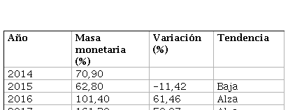 Masa monetaria en Venezuela para el periodo 2014-2018.