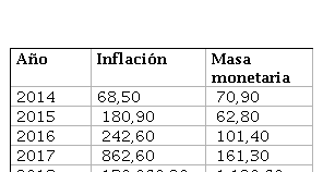 Resumen de inflación y masa monetaria en Venezuela para el período 2014-2018