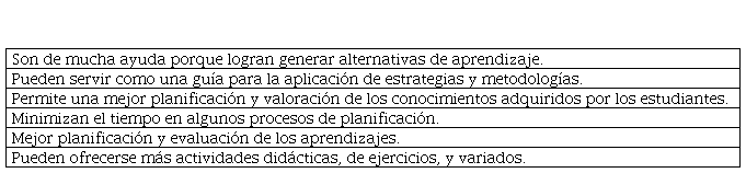 Por su parte, Ayuso y Gutiérrez (2022) sostienen que la IA en el ámbito educativo tiene el potencial de adaptar los métodos de enseñanza a las necesidades individuales de los estudiantes, lo que contribuye a una mayor efectividad en el aprendizaje. En línea con esta visión, los docentes destacan diversas ventajas percibidas en el uso de herramientas basadas en IA, entre las que se incluyen la optimización del tiempo, la mejora en la calidad de los procesos de planificación y evaluación, así como la generación de alternativas de aprendizaje más personalizadas. Asimismo, se valora especialmente la capacidad de la IA para ofrecer orientaciones en cuanto a estrategias metodológicas y actividades didácticas variadas, lo que refuerza su utilidad en la práctica educativa.
