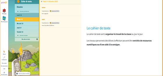 El servicio "cuaderno de texto" utilizado para organizar el desarrollo de la clase y las actividades de los alumnos