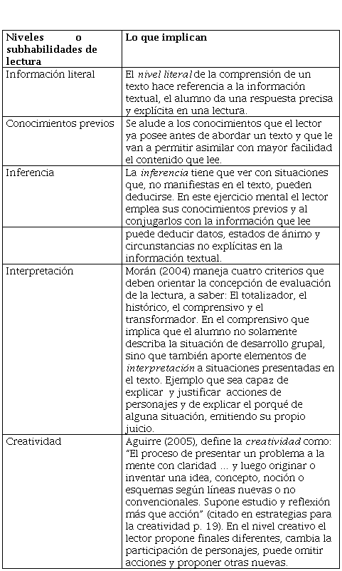 Ahora bien, estas subhabilidades o niveles de comprensión lectora implican lo que se presenta en la tabla 2.