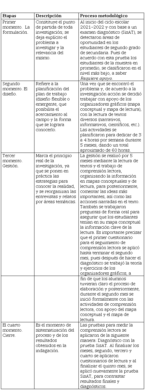 Ahora bien, con respecto al proceso metodológico para fortalecer la comprensión lectora de los estudiantes de segundo grado de la secundaria Acuexcomac, se tomó en consideración a Sandoval (2000), tal como se expone a continuación.