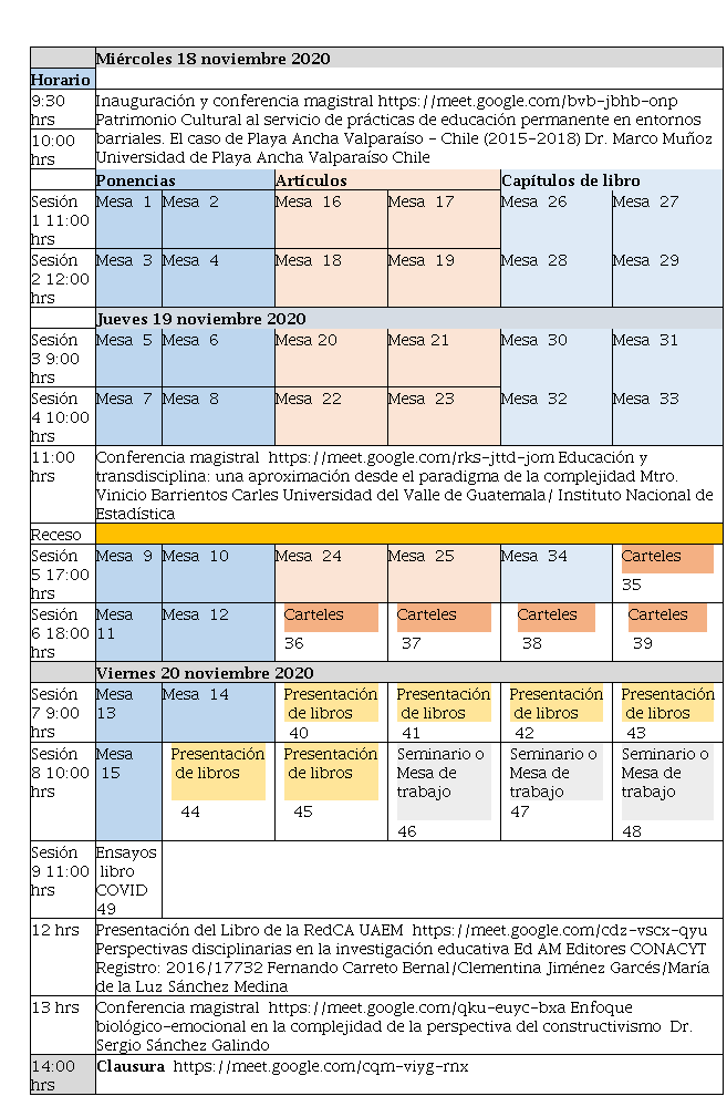Para ampliar la información les invitamos a visitar nuestra página de la RedCA http://www.redcaie.uaemex.mx/ para acceder a las memorias de los congresos organizados, así como de conocer nuestras publicaciones en acceso abierto, los Cuerpos Académicos que integran las Redes de Investigación Educativa con sus respectivos profesores investigadores y sus líneas de investigación.