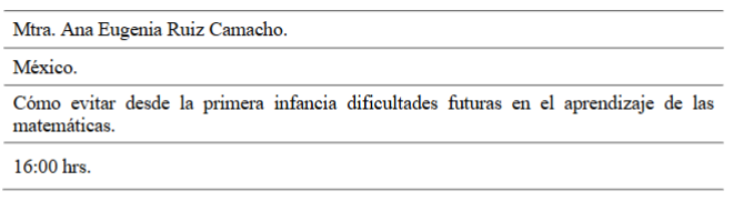 La maestra Ana Eugenia inicia su exposición con el planteamiento ¿Cuál es la asignatura que representa más dificultades para niños, jóvenes, padres de familia y profesores? Invitando a todos los asistentes a reflexionar sobre la respuesta a este, posteriormente dice que la respuesta es clara: las matemáticas. Porque provoca dificultades probadas que radican en factores concretos. El aprendizaje de ésta exige a los niños llevar a cabo relaciones posibles, crear significados abstractos, codificar y descodificar símbolos.