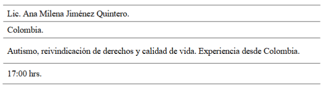 En otro señalamiento se advirtió que ¿Una discapacidad define a una persona? La respuesta fue que mucho tiempo para comprender que más allá de un diagnóstico la persona es ser humano; a una persona la definen más elementos, es decir su propia personalidad con derechos para decidir. La ponente señalo que tiene un hijo con autismo, el cual ha llevado en un proceso de acompañamiento situado.