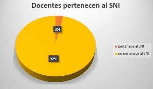 Esto se relaciona con su pertenencia al Sistema Nacional de Investigadores (SNI), sólo el 3.4% están adscritos a ese sistema (Figura7).