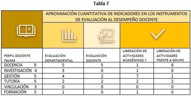 La información recabada en torno a los lineamientos normativos se estructuró en tablas comparativas basadas en las categorías expresadas en el Perfil Docente del SNEST (SEPDGEST, 2006): docencia, investigación, gestión, tutoría, vinculación y formación. Se buscó la frecuencia de los indicadores de cada una de esas categorías, en los instrumentos de evaluación: departamental, evaluación docente, autoevaluación, liberación de actividades académicas y liberación de actividades frente a grupo.