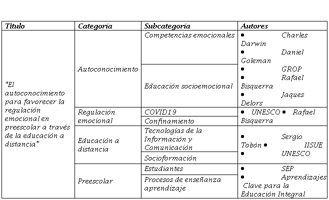 Abstract: This scientific article is the product of a mixed research carried out in the kindergarten "Félix Lope de Vega y Carpio", located in the municipality of Nezahualcóyotl, State of Mexico, specifically with the third grade group "A", during the 2020-2021 cycle, this required the use of the research-action method to have a greater interaction with the educational fact, For its part, the objective focused on demonstrating that self-knowledge favors emotional regulation in preschool through distance education, also the methodological structure made it necessary to formulate an aulic as well as institutional diagnosis, combining a series of instruments quantitative and qualitative, for example the field diary, interviews and questionnaires, was strengthened with a documentary and field research work, a theoretical framework was also constituted with the contributions of leading specialists in the field, while the central axes were self-knowledge, emotional regulation and distance education, also an intervention proposal was designed and evaluated entitled: "Life behind the screen", whose purpose was that the students will develop through learning sequences a positive sense of themselves and learn to regulate their emotions, finally the results are included based on the triangulation of the information considering the diagnosis, the intervention and the theoretical foundation, in addition to including the knowledge, skills and attitudes shown by the students of the preschool level from the distance modality.