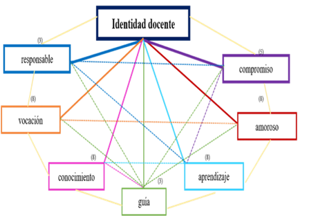 A partir de estas evocaciones se identifica que guía representa el “núcleo central de la representación respecto a identidad profesional ya que cumple con la función generadora” (Abric, 1976, p. 67) siendo el elemento mediante el cual puede transformarse el significado de los elementos periféricos que transforman la representación.