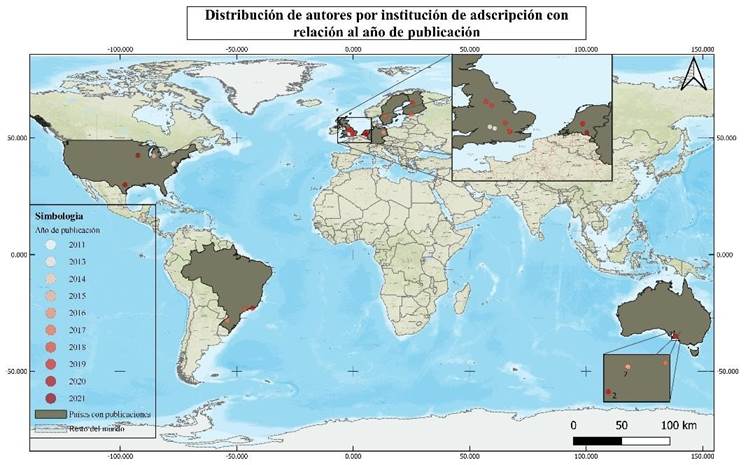Esto a partir de la identificación la institución de adscripción de los autores: