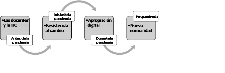 De esta manera, la investigación pretende proponer algunos puntos alrededor de los cuales pueda construirse una aproximación a las implicaciones que ha tenido el uso de los recursos digitales desde el punto de vista de los sujetos dentro del contexto de la pandemia causada por el virus SARS COV2. Para ello, se han distinguido cuatro momentos para entender el impacto de la pandemia en la educación: a) el uso de los medios digitales antes de la pandemia, b) el inicio del confinamiento, c) la apropiación digital docente y d) la “nueva normalidad.