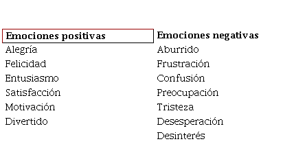 Como ya se enfatizó anteriormente, se debe de crear una experiencia de aprendizaje, primero emocional y luego cognitiva, para esto se requiere mencionar que las emociones son “estados temporales en calidad de respuestas específicas ante hechos determinados, por lo general de corta duración y relativamente intensa” (Guerrit y Zimbardo, 2005, citado en Garcia, J. A., 2012), están íntimamente relacionadas con el aprendizaje virtual, porque si se tienen emociones positivas ayudaran a recordar información más compleja.