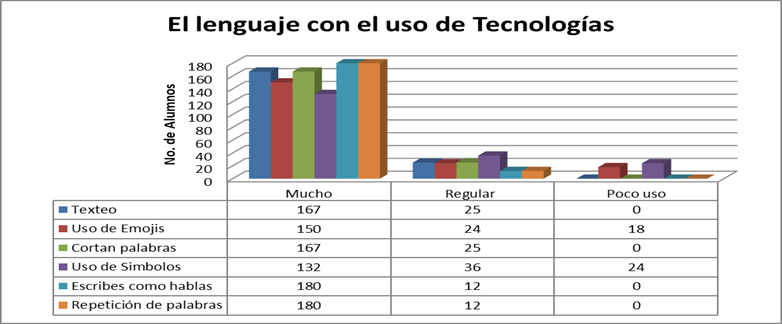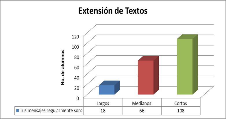 Los datos obtenidos de la encuesta hacen notar que existe un escaso dominio del idioma español en cuanto a las reglas de redacción pues la coherencia en sus textos es de mala calidad, dado que no logran hilar sus ideas, por lo que al transmitir un mensaje largo o sostener una conversación por medio del texteo que sea duradera.