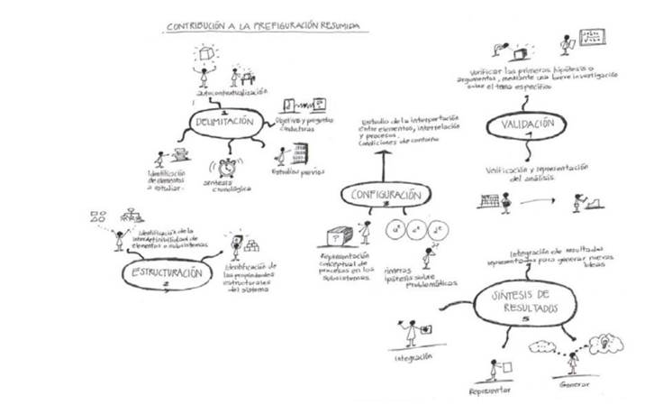 Estas fases buscan, por una parte, generar en un doble proceso, la diferenciación de una totalidad dada o seleccionada por el investigador, y la integración o reintegración de una totalidad conceptualmente más enriquecida (García, 1986: 409). Estas son las bases metodológicas para la prefiguración de ecosistemas de aprendizaje digital (figura 2)