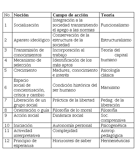 Con la finalidad de reflexionar brevemente sobre algunas maneras en que es concebida, los sentidos reducidos, restringidos y amplios que pregonan y los alcances que privilegian, en el Cuadro 1 se presentan algunas nociones sobre el concepto de educación.