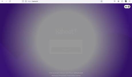 Esta imagen simula la experiencia visual de alguien que sufre de degeneración macular mientras navega por el sitio web de Kahoot.